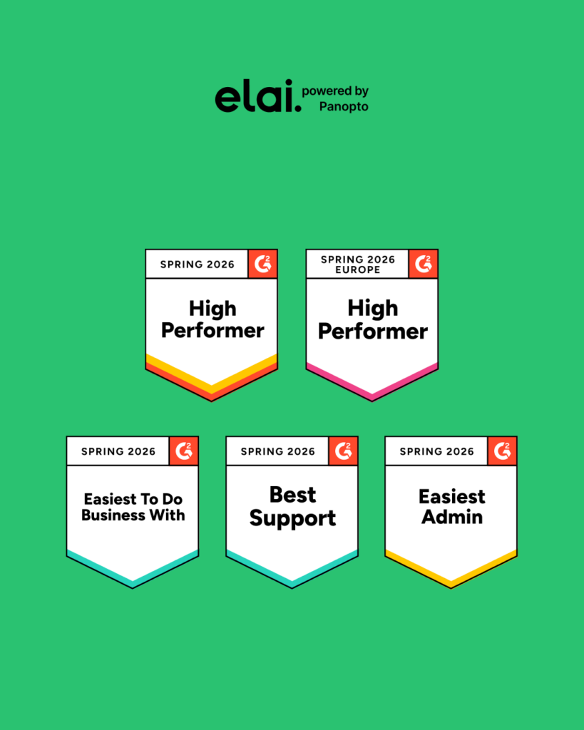 This season, Elai, powered by Panopto, earned High Performer, High Performer Europe, Easiest To Do Business With, Best Support, and Easiest Admin badges, and hit the G2 Milestone of Users Love Us — based on verified customer reviews across the G2 Spring 2026 Reports. What stands out about this set of recognitions isn’t just the volume; it’s what they measure. These aren’t badges about market position. They’re about the day-to-day experience of working with Elai: how easy it is to get started, how helpful the team is when something comes up, and whether customers would recommend it to someone else.